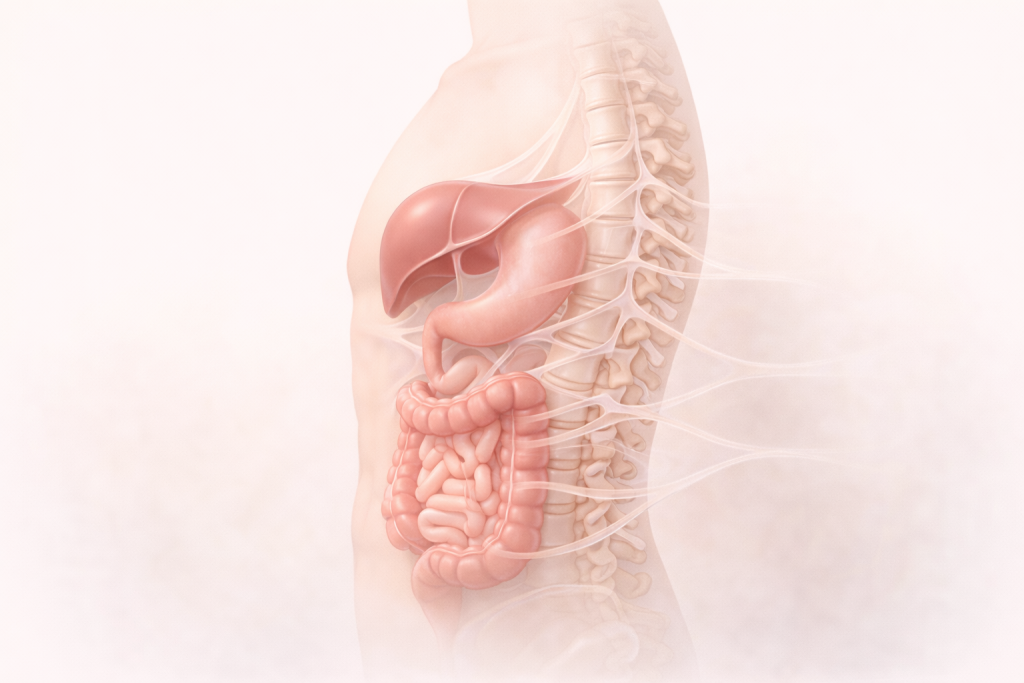 内臓の緊張が背骨の歪みを引き起こすこともあれば、逆に背骨の歪みが内臓の動きを妨げることもあります。
