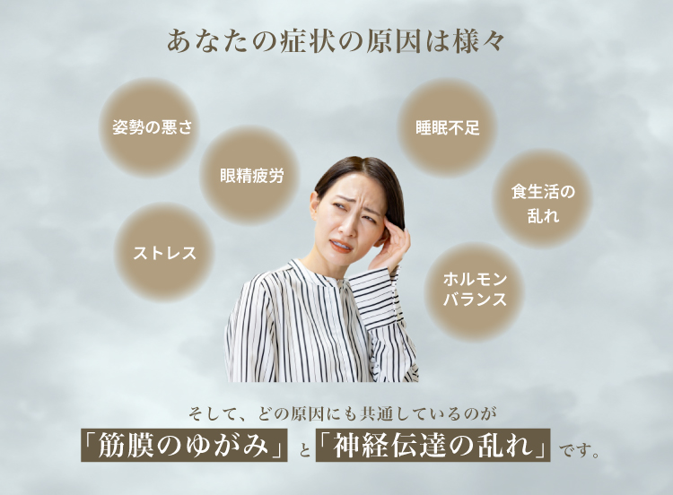 「身体は「膜」で全身がつながっている」と考え、患部だけに注目するのではなく、どこが自律神経の乱れの起点になっているかをしっかり見極めます。